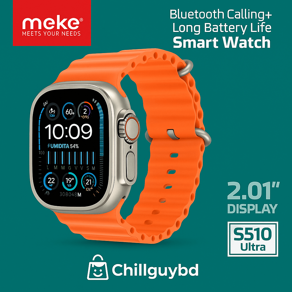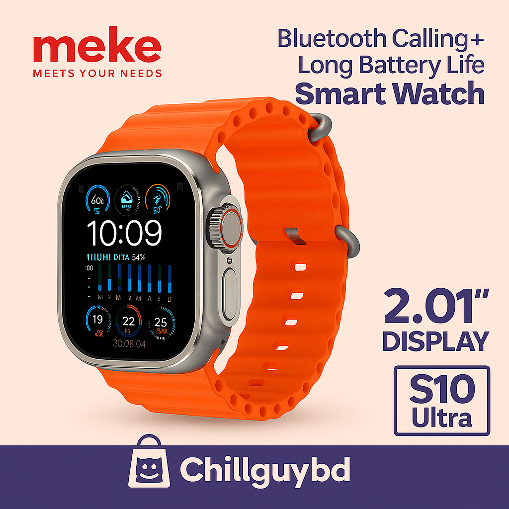 Geeoo Meke S10 Ultra Bluetooth Calling Smartwatch এমন একটি স্মার্টওয়াচ যা প্রযুক্তি ও স্টাইলকে একত্র করেছে। 2.01 ইঞ্চির বড় স্ক্রিন এবং 240×296 রেজোলিউশনসহ এর ডিসপ্লে দারুণভাবে ঝকঝকে ও স্পষ্ট, যা আপনার ফিটনেস লক্ষ্য ট্র্যাকিং, নোটিফিকেশন ম্যানেজমেন্ট এবং হাতের মুঠোতেই কল করার জন্য আদর্শ।